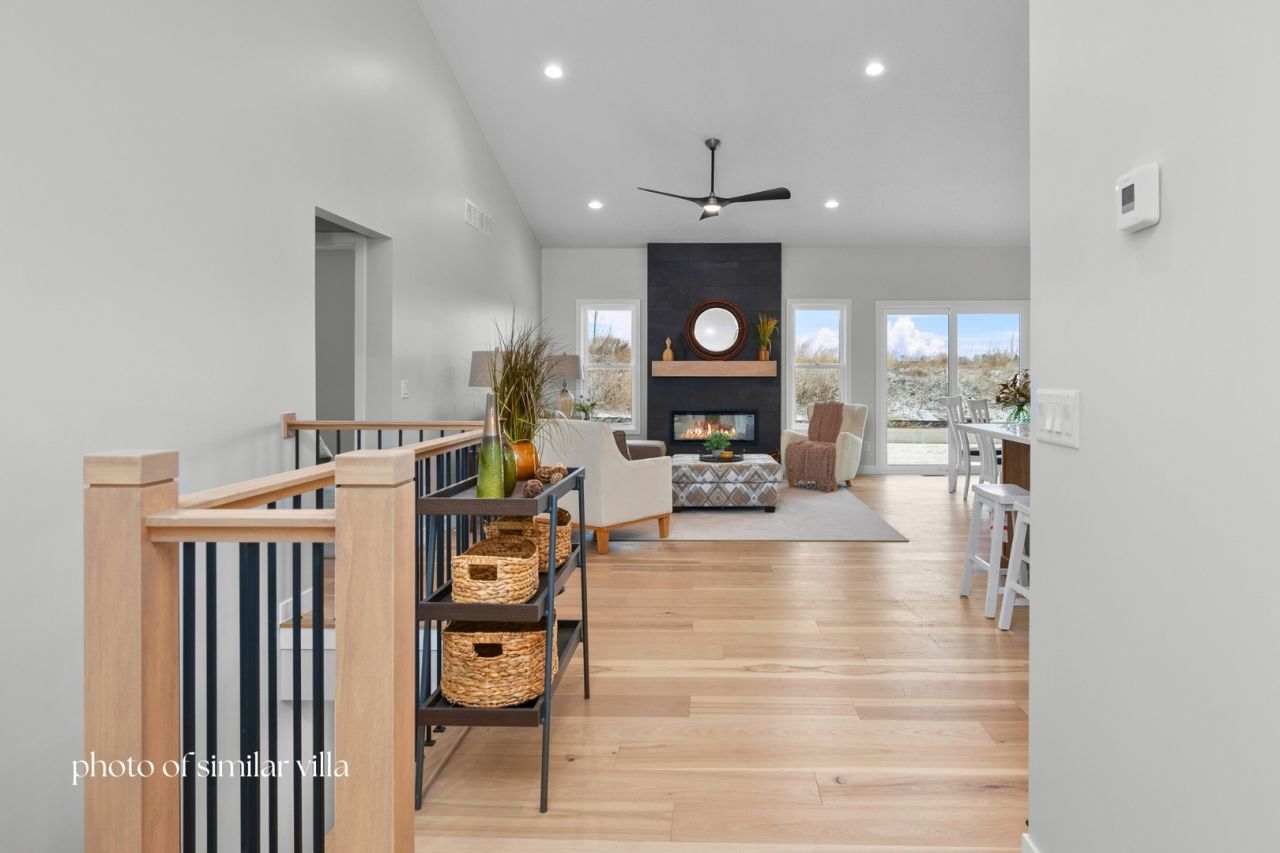 Welcome to the exquisite Redbud Circle Villas by Encore Homes LLC, nestled in the new Grunwald Grove subdivision. These charming attached villas boast two spacious bedrooms, including a primary suite with a walk-in closet next to the laundry room and an en-suite bath featuring a tiled shower and double sinks. The heart of each home is the island kitchen, adorned with hard surface countertops, modern appliances, and a convenient pantry. The hardwood floors seamlessly flow into the dining and living area, where a cozy fireplace invites relaxation, and sliding doors lead to a private patio. For those seeking extra space, the finishable basement offers an egress window, perfect for adding a third bedroom or creating a versatile living area. Enjoy the ease of low HOA fees that cover lawn care, snow removal, and access maintenance, allowing you more time to savor your beautiful surroundings. Discover the perfect blend of style, functionality, and community at Redbud Circle Villas-your ideal home awaits! Visit 1875 Redbud Circle, Unit 102